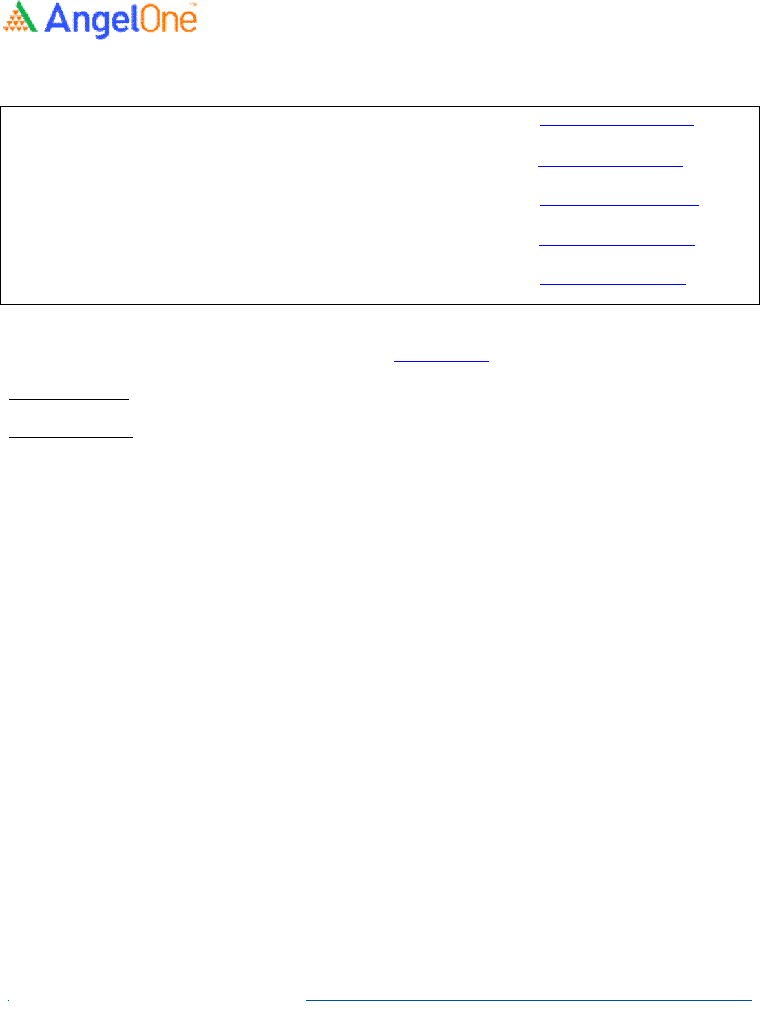 Angel One Limited (hereinafter referred to as “Angel”) is a registered Member of National Stock Exchange of India Limited, Bombay