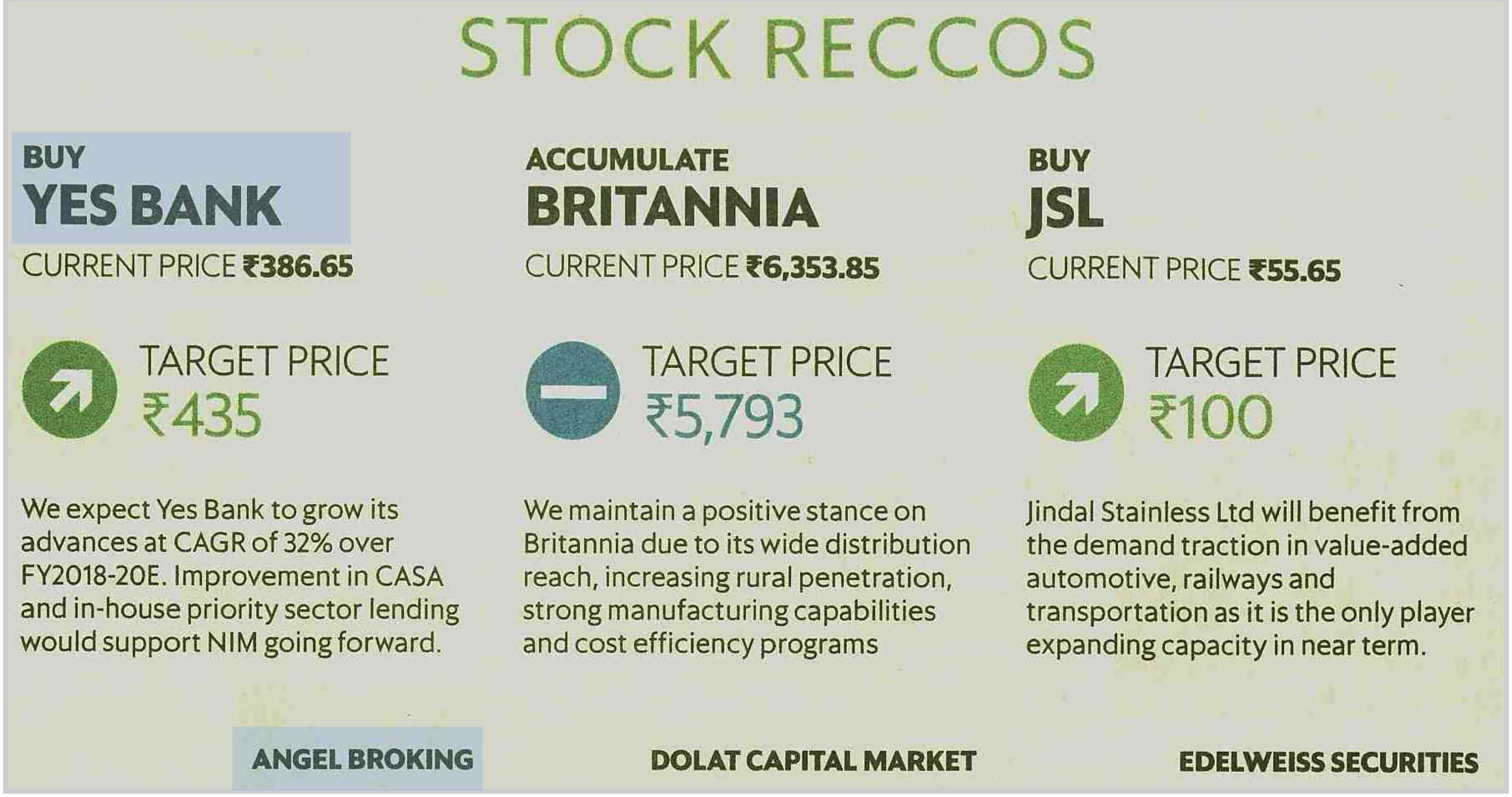 STOCK RECCOS